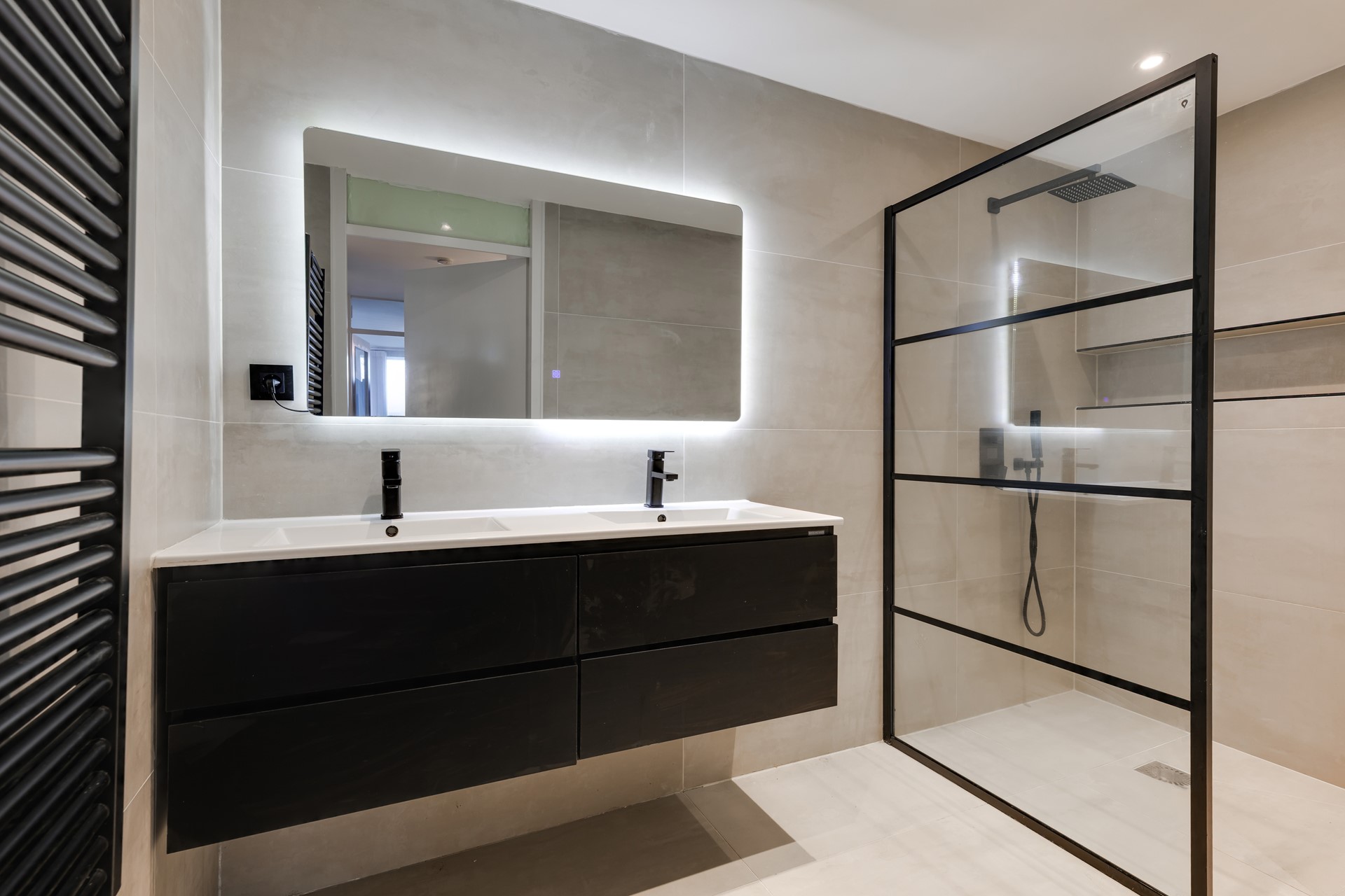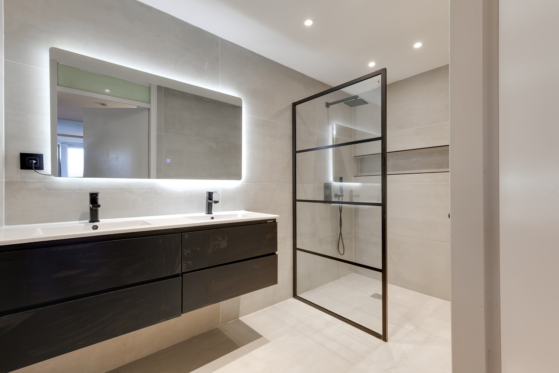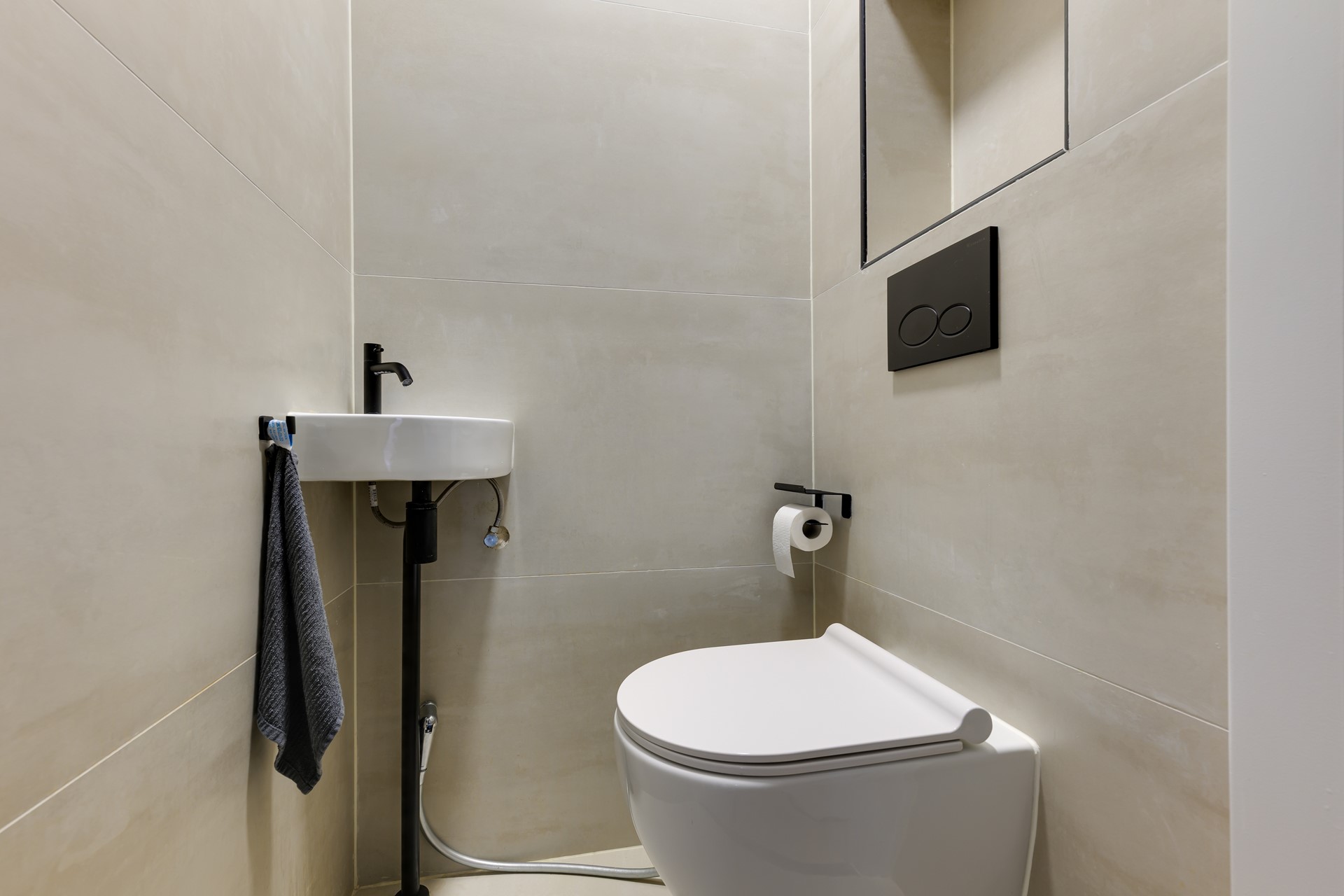 De badkamer is modern, fris en stijlvol uitgevoerd en voelt als een kleine wellnessruimte in huis. Met een luxe inloop douche en een strakke afwerking is dit een plek waar je de dag ontspannen begint én afsluit. Daarnaast is er een separaat toilet en een praktische interne berging/wasruimte.
