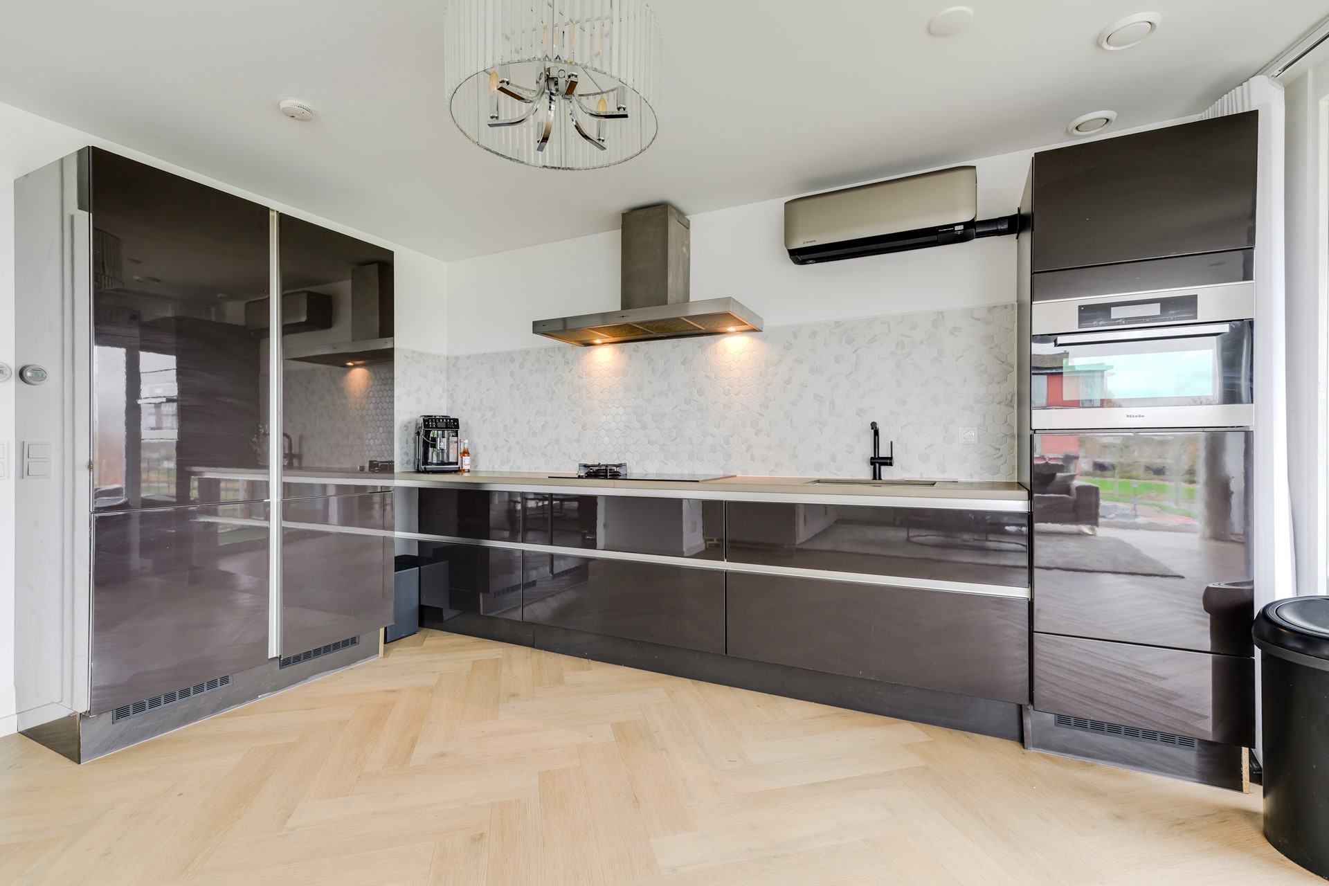 De open keuken sluit hier naadloos op aan en vormt een fijne plek om te koken terwijl je in contact blijft met de woonkamer. Ideaal voor lange avonden tafelen of een borrel met vrienden.
