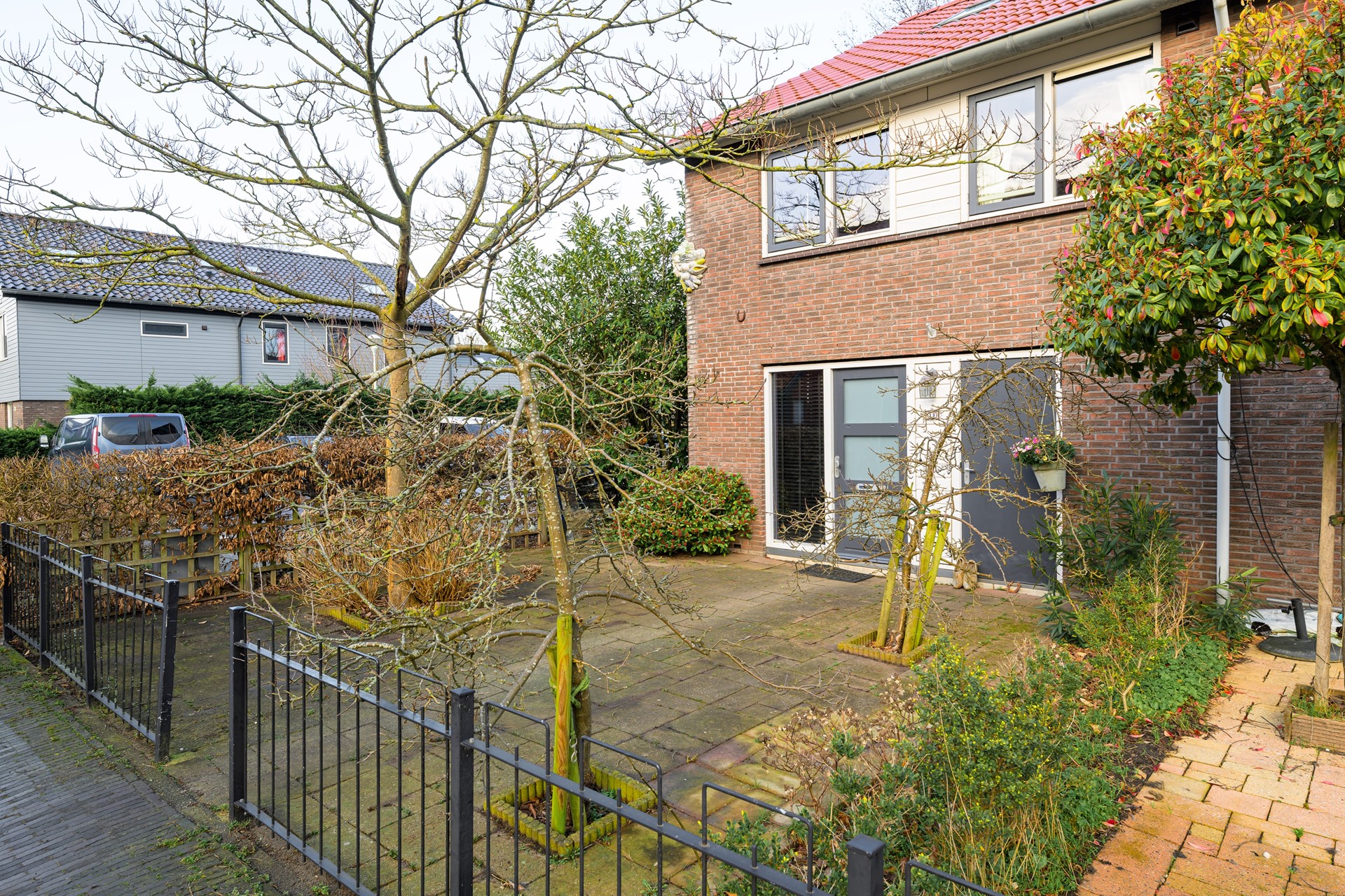 Aan de voorzijde bevindt zich een verzorgde voortuin.