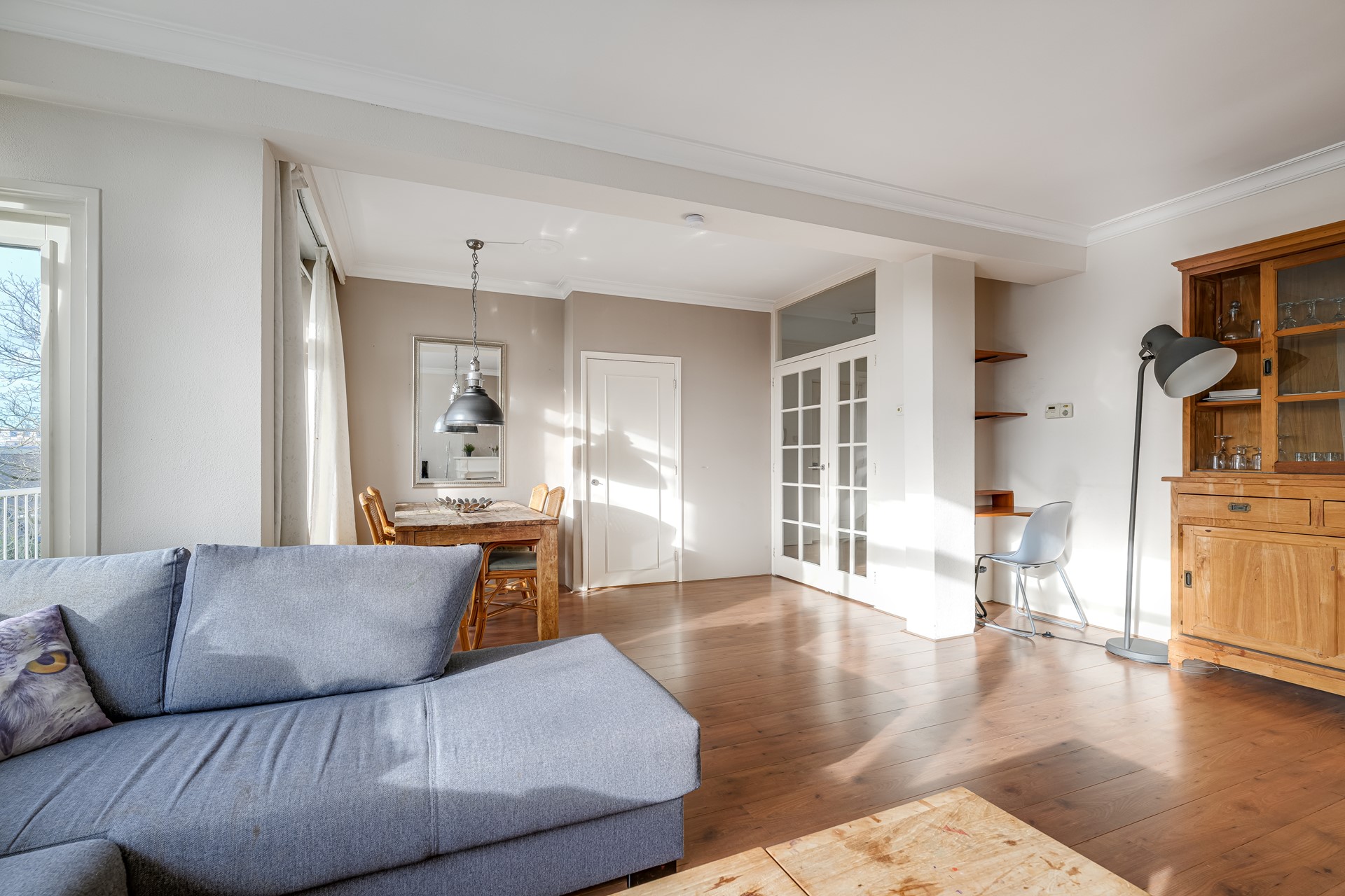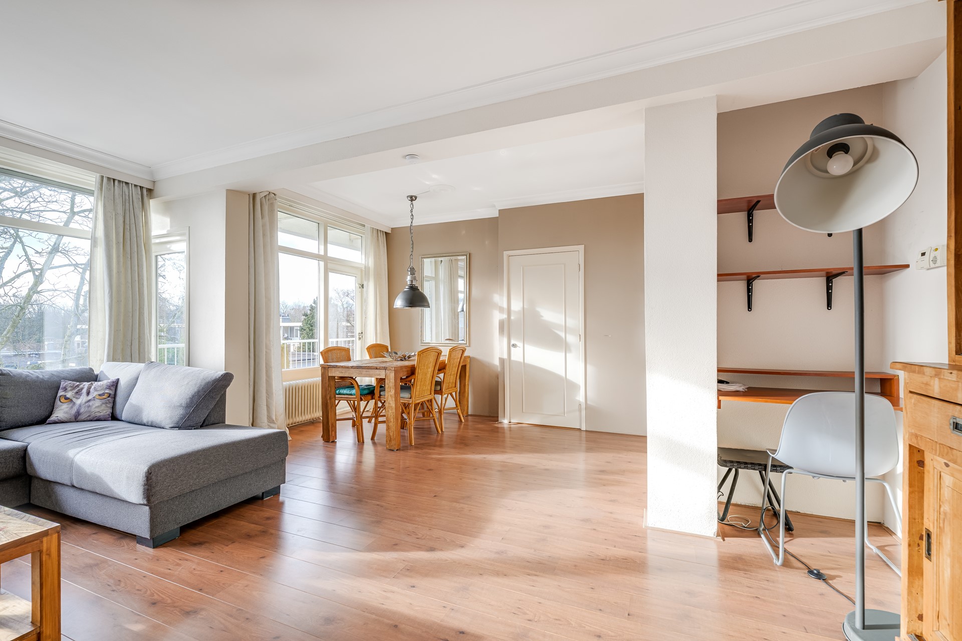 De royale woonkamer is heerlijk rustig gelegen aan een mooi plantsoen waarop u uitkijkt vanuit de woonkamer en het balkon op het zuiden, het is heerlijk licht dankzij de grote raampartijen. De plafondhoogte van circa 2,67 meter versterkt het ruimtelijke gevoel. Deze ruime woonkamer heeft een zijbeuk waarin de eethoek is gesitueerd. Vanuit de woonkamer stap je direct het balkon op, met uitzicht over groen en de rustige woonomgeving. Een fijne plek voor een kop koffie in de ochtend of een ontspannen moment aan het eind van de dag.