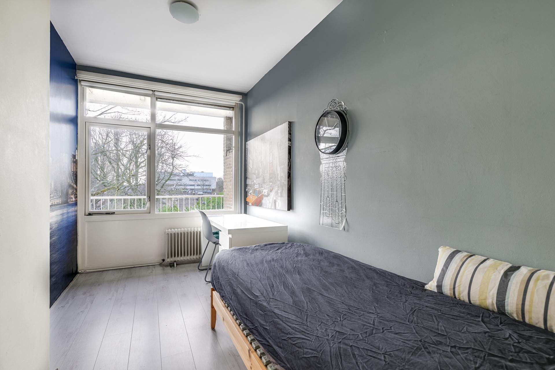 Het appartement beschikt over twee grote slaapkamers (eenvoudig om een derde slaapkamer te creëren). De hoofdslaapkamer is ruim en voorzien van vaste kastruimte; de tweede slaapkamer is uitstekend geschikt als slaap-, werk- of logeerkamer. De badkamer is uitgevoerd met ligbad, wastafel, design radiator en aansluitingen voor wasmachine en droger. Daarnaast is er een separaat toilet.