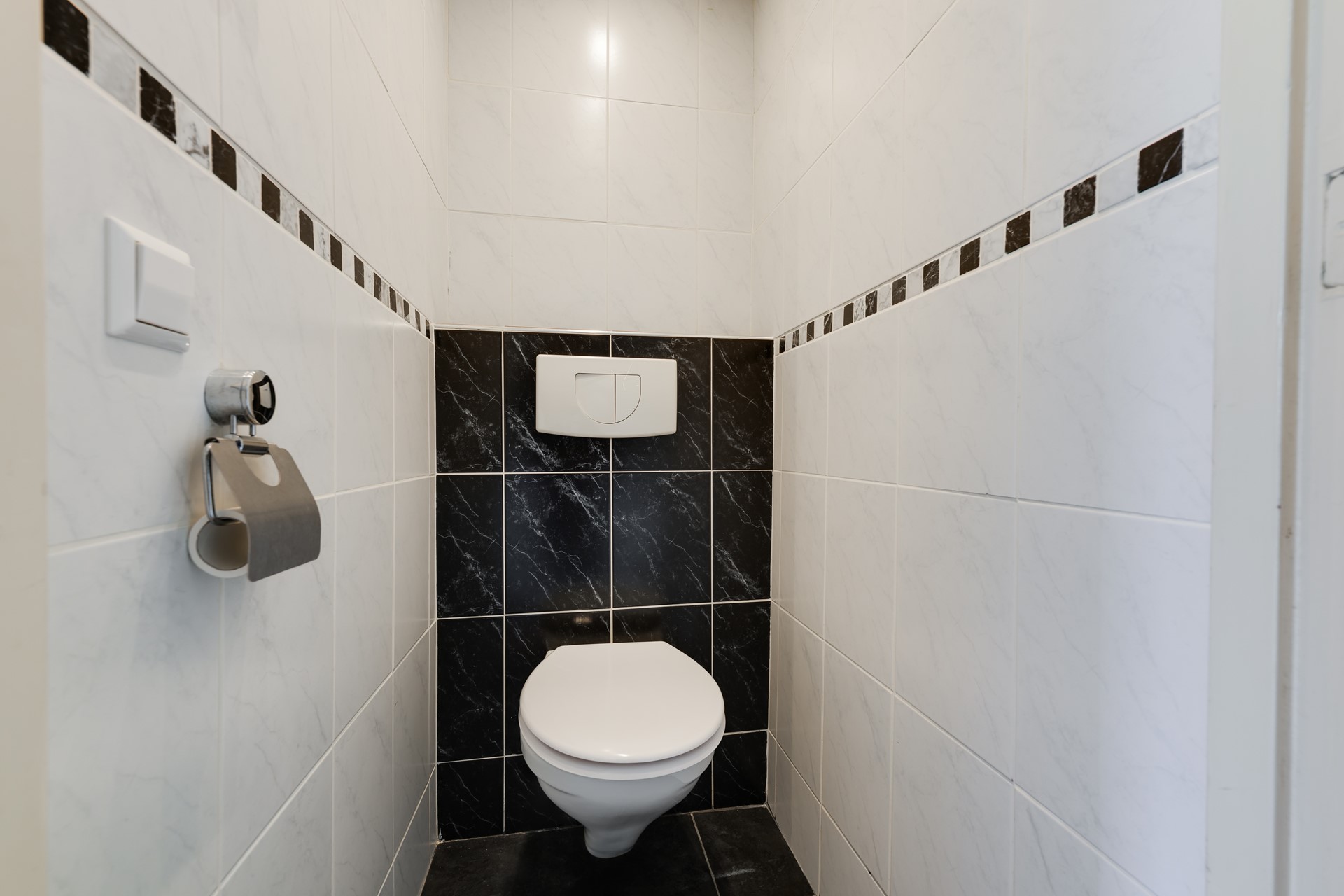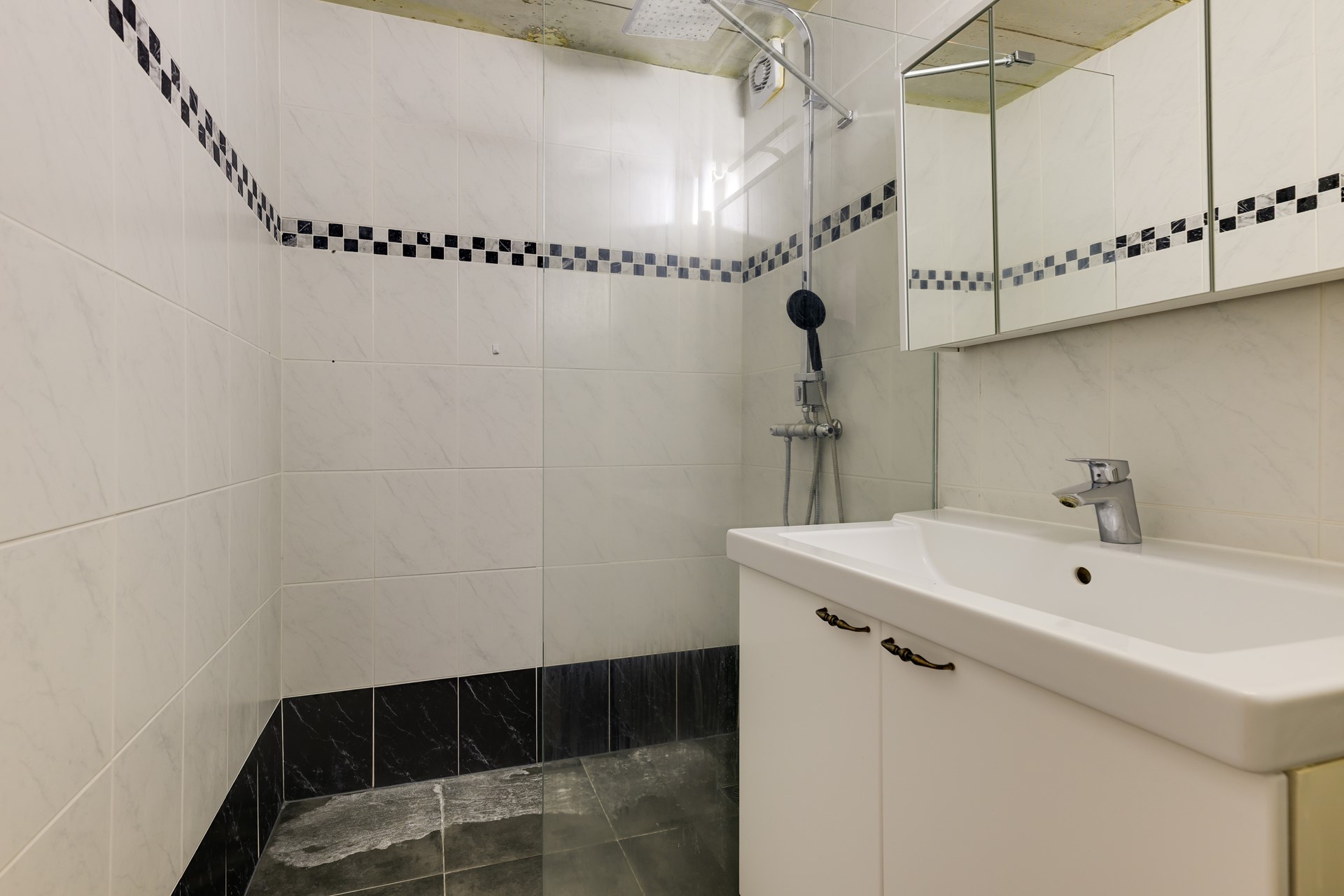 De badkamer is netjes uitgevoerd en voorzien van een inloopdouche en wastafelmeubel. Separaat toilet aanwezig.