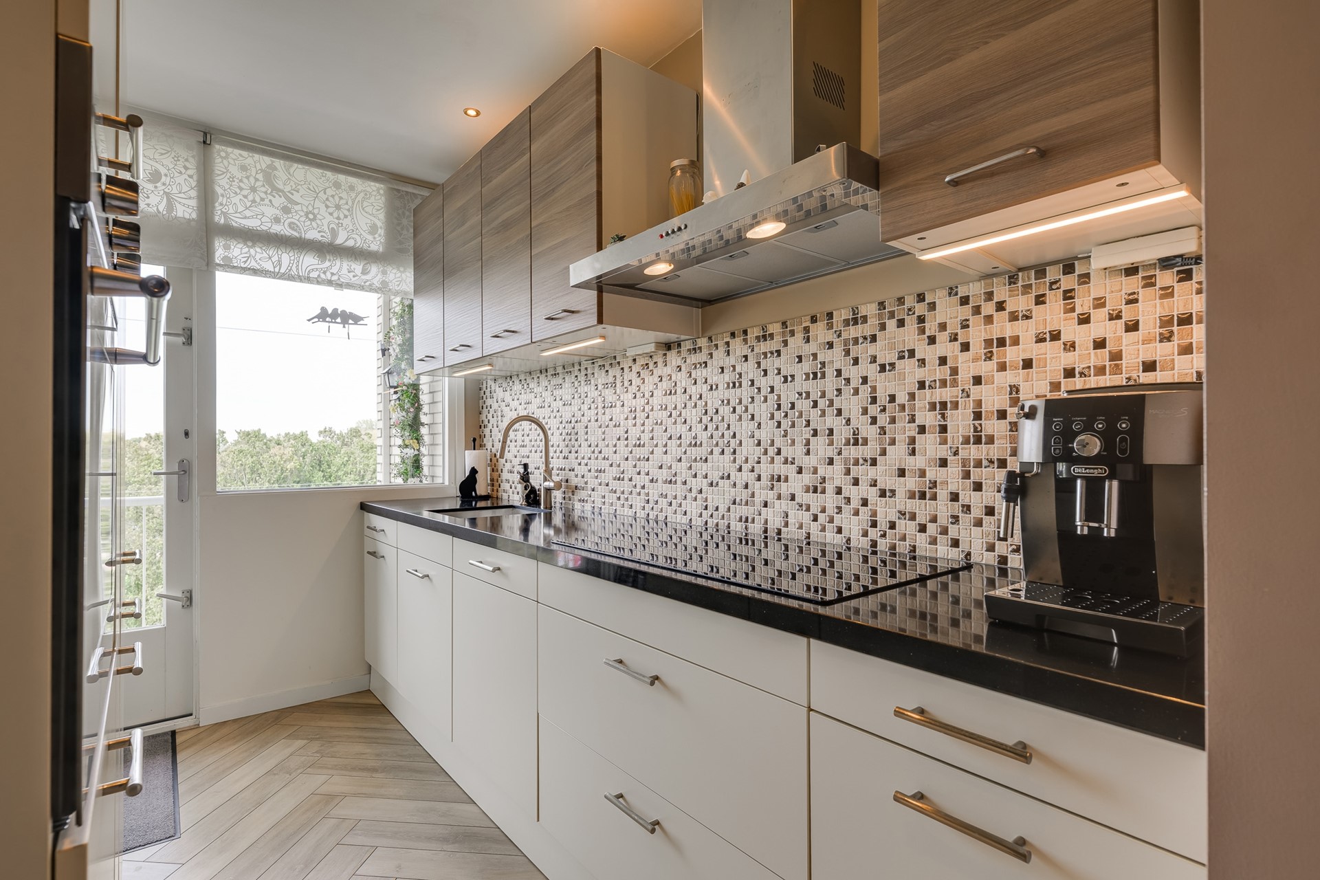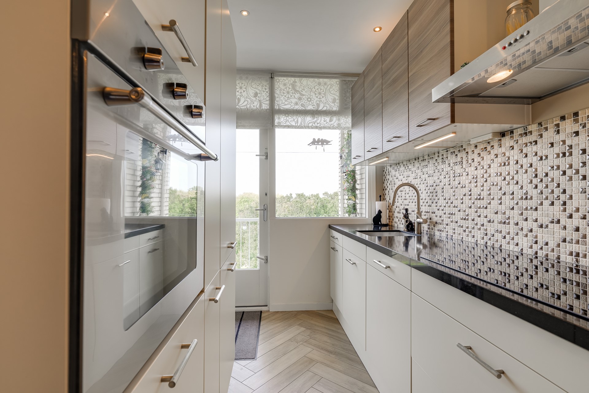 De moderne keuken is voorzien van diverse inbouwapparaten, waaronder oven, inductie kookplaat, afzuigkap, vaatwasser en koelkast. Vanuit hier stap je zo het balkon op om met een drankje van de avondzon te genieten met een prachtig uitzicht over het groen en een waterpartij.