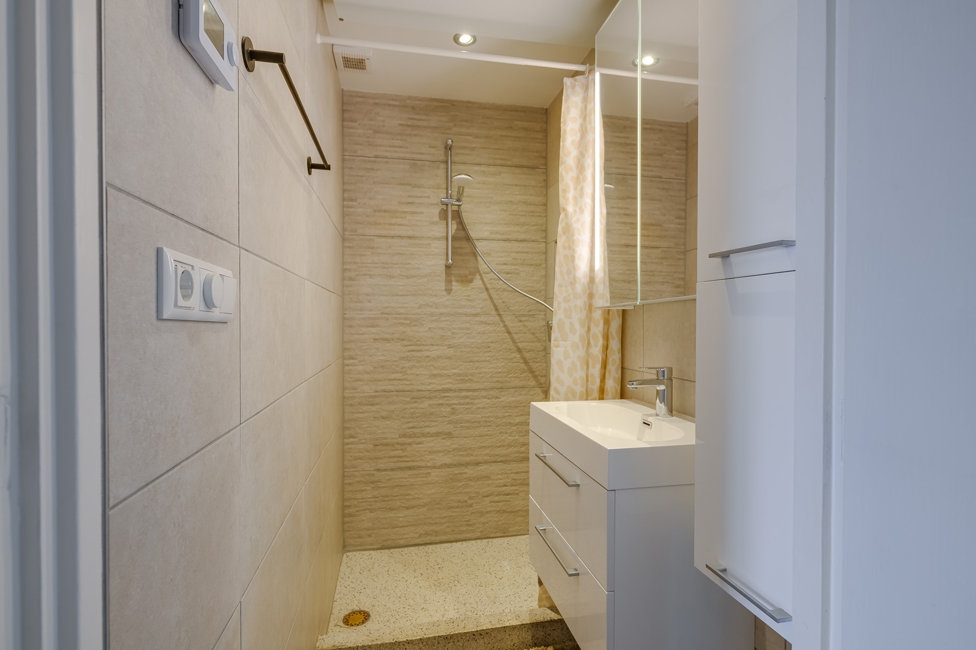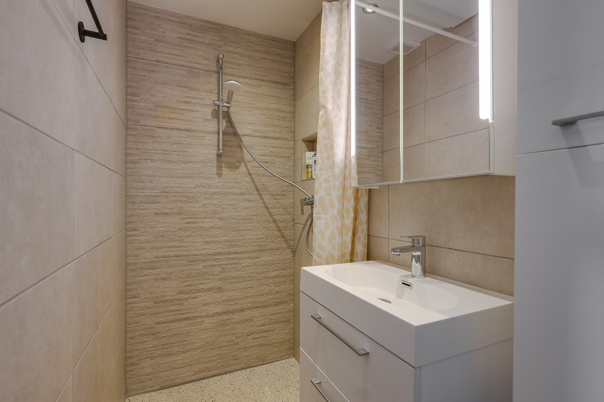 Er zijn drie goed bemeten slaapkamers, waarvan één master met toegang tot het tweede balkon (avondzon). De badkamer beschikt over een moderne douche en wastafelmeubel. Het toilet is separaat. Beide voorzien van infrarood warmtepanelen met thermostaat.