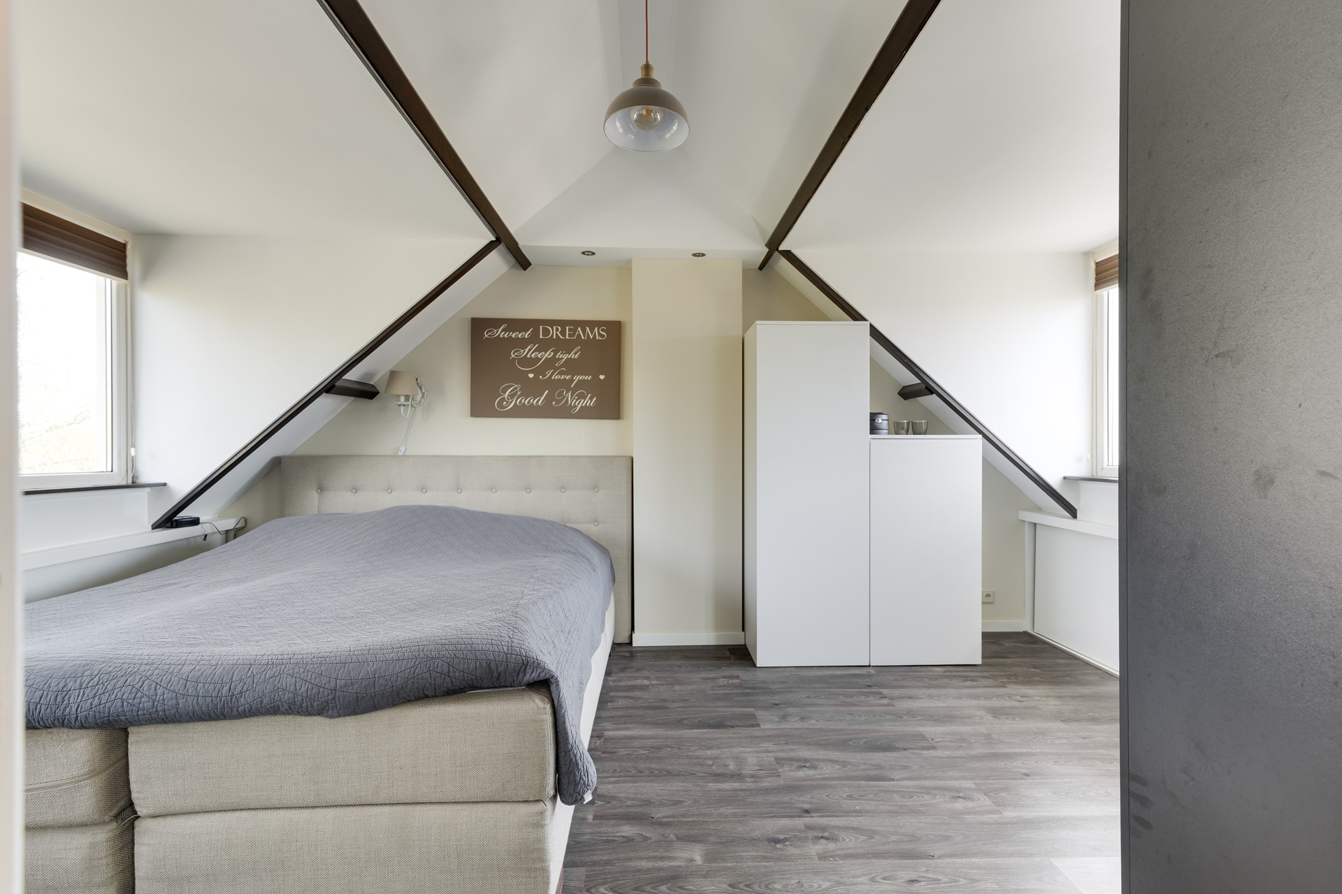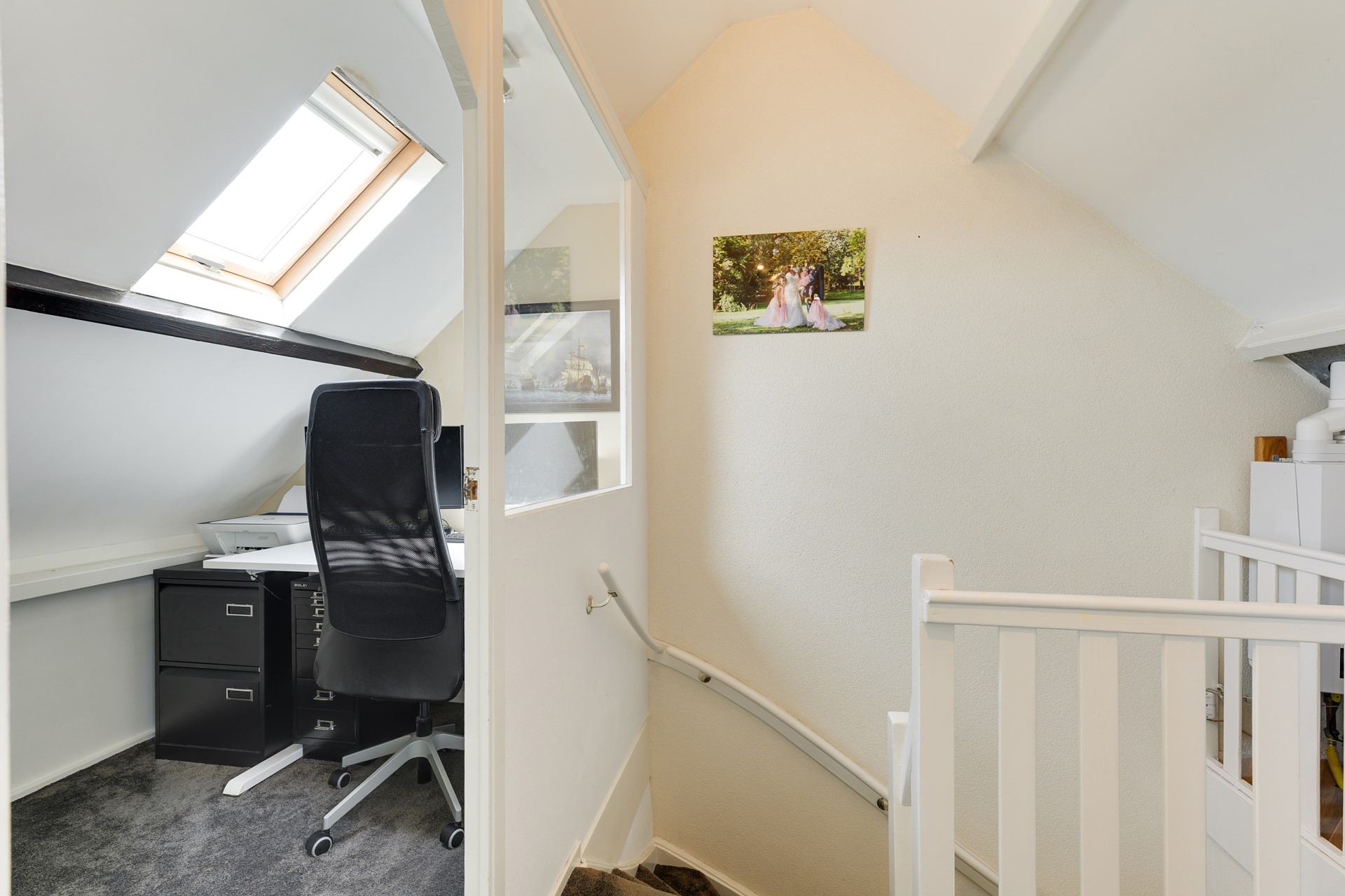 * Sfeervolle kapverdieping met zichtbare balken