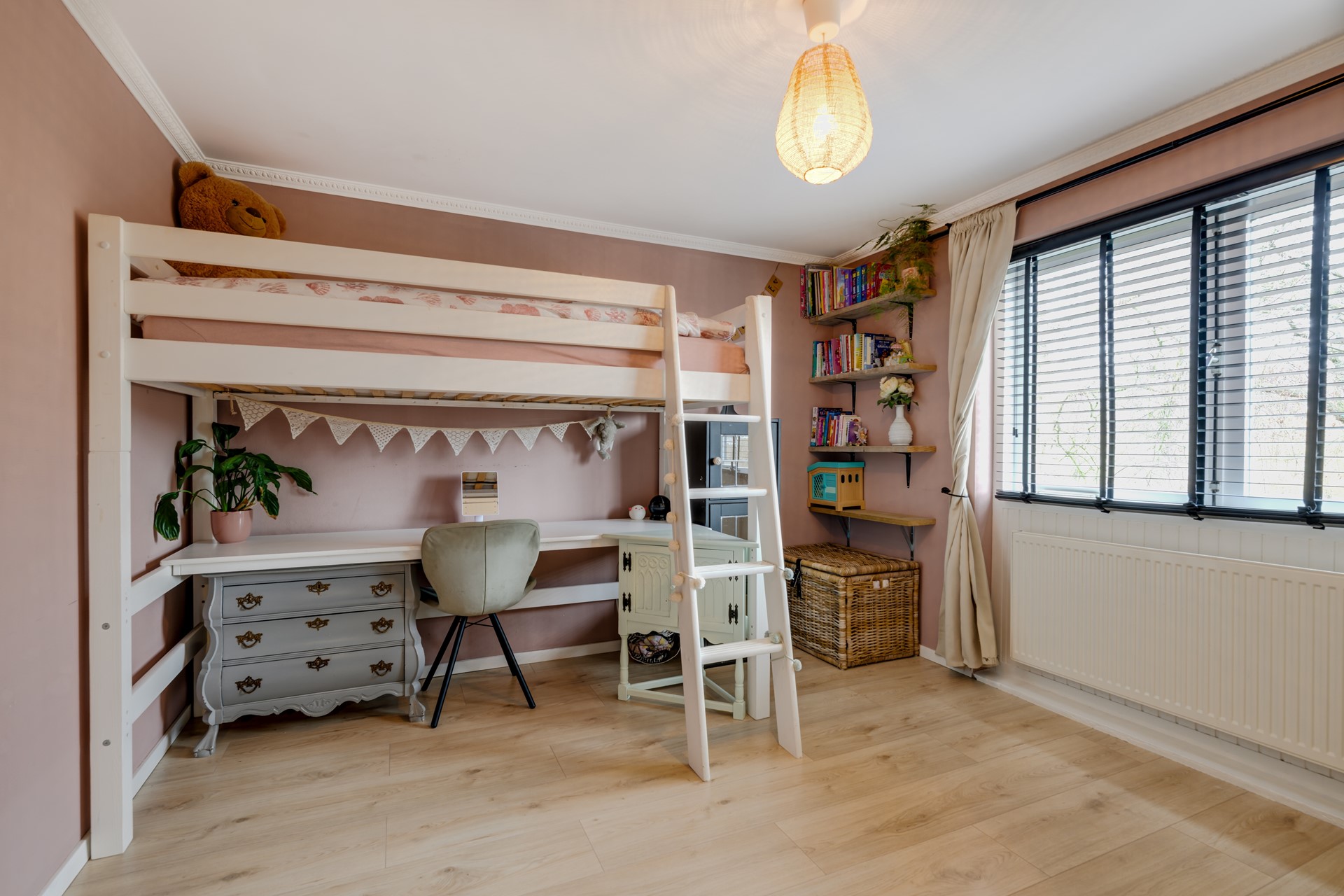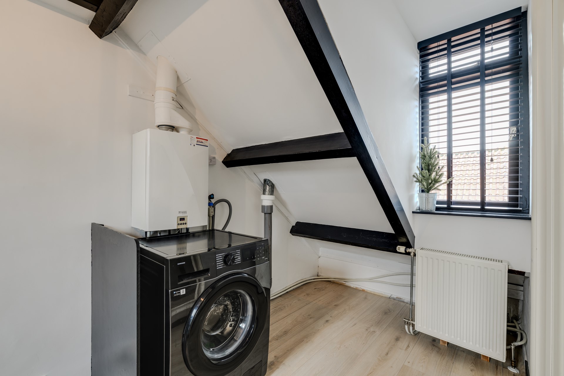 De volwaardige tweede verdieping biedt een ruime vierde slaapkamer en extra bergruimte met opstelplaats voor wasmachine en CV-installatie. Ideaal als ouderslaapkamer, werkruimte of hobbykamer.