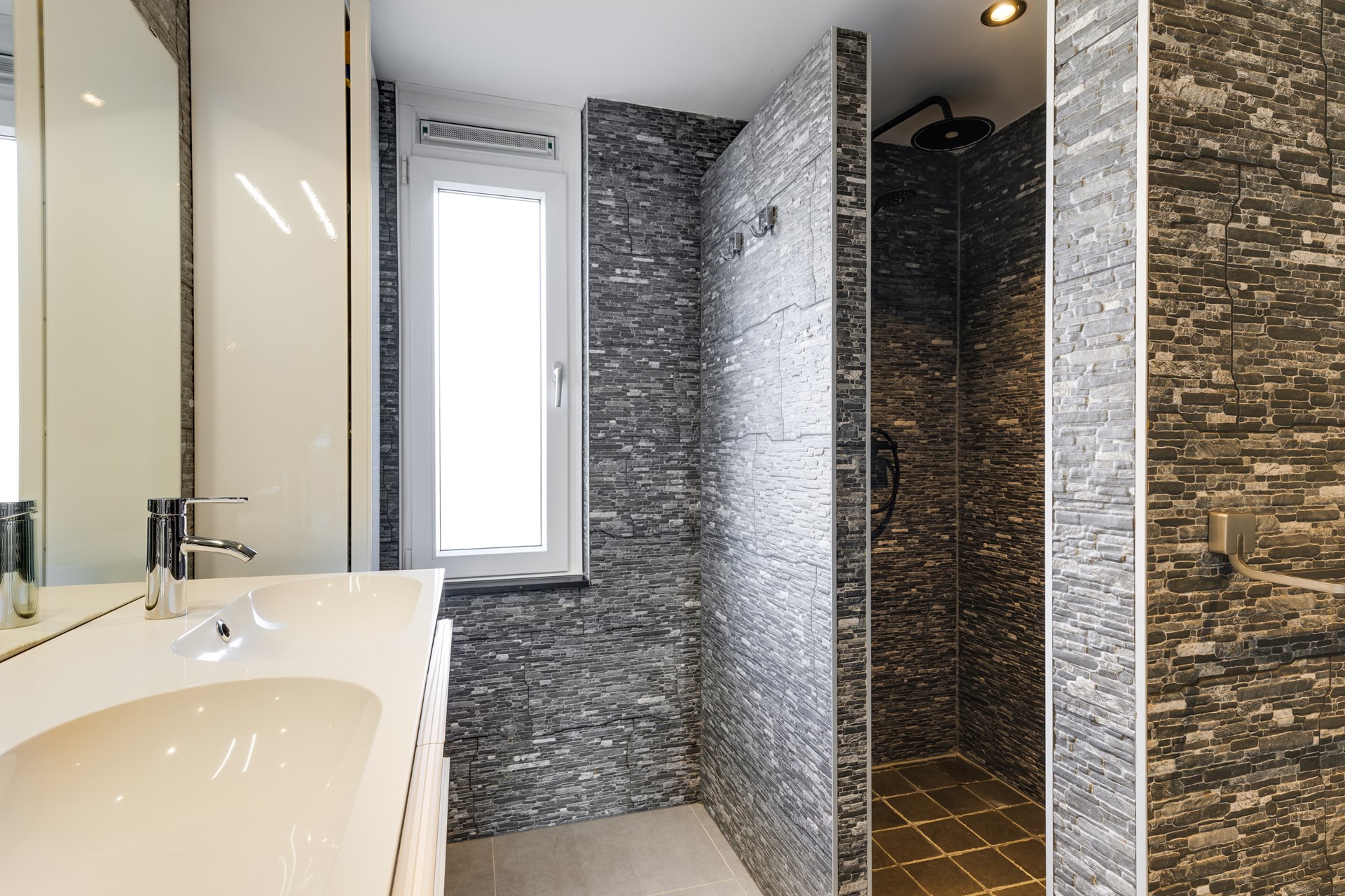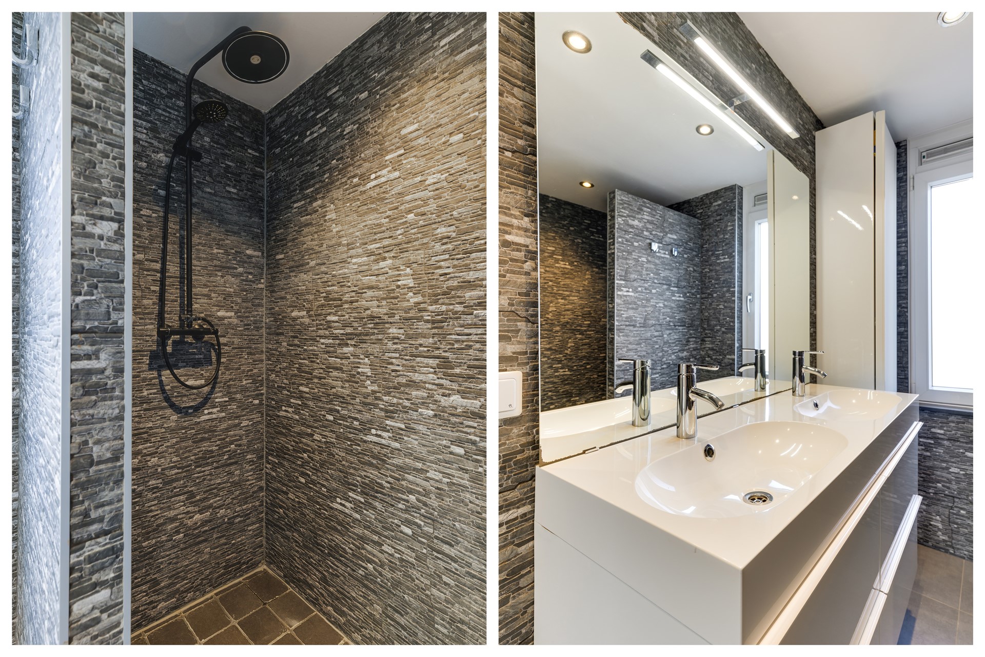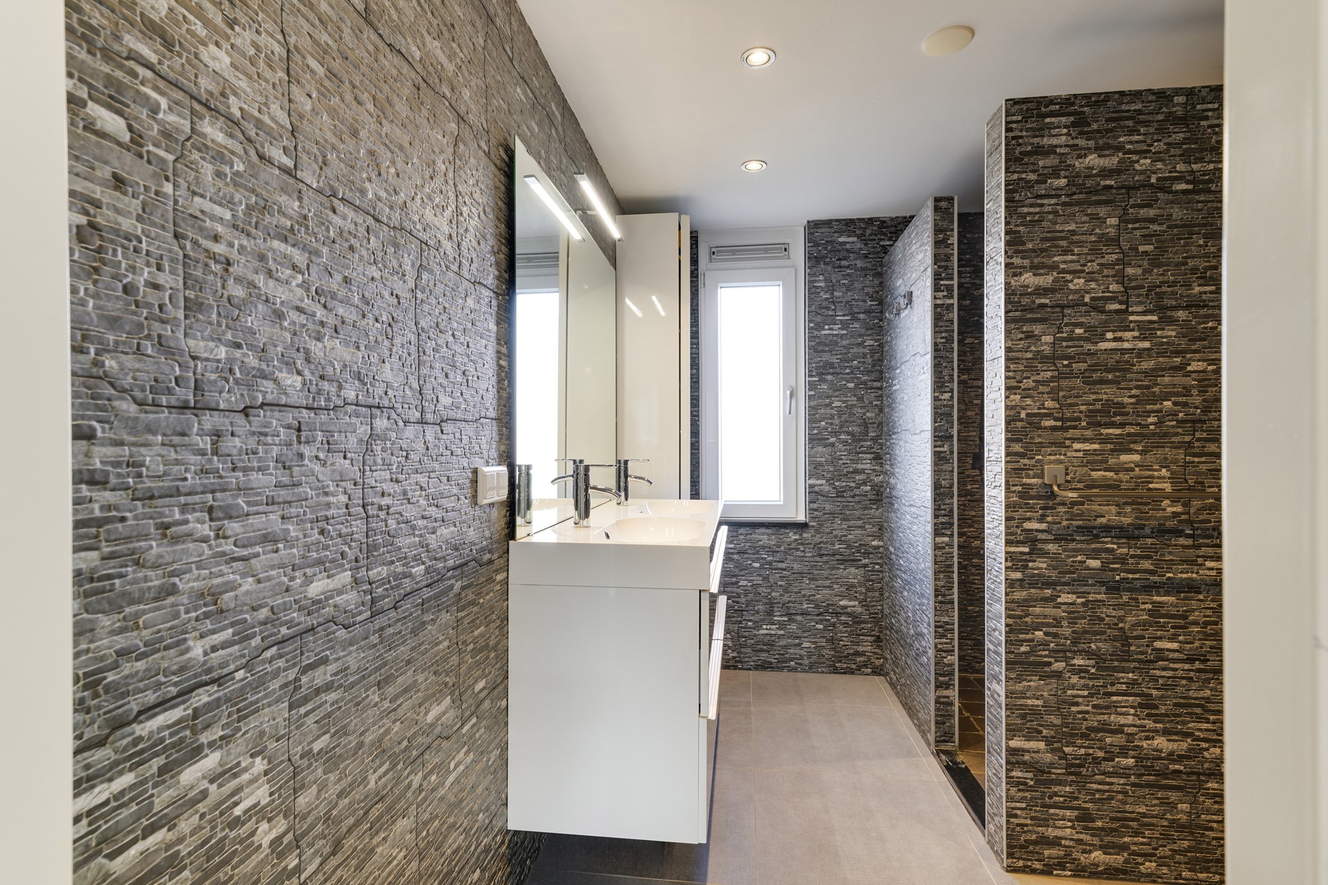 • Luxe badkamer met dubbele wastafel en ruime inloopdouche
