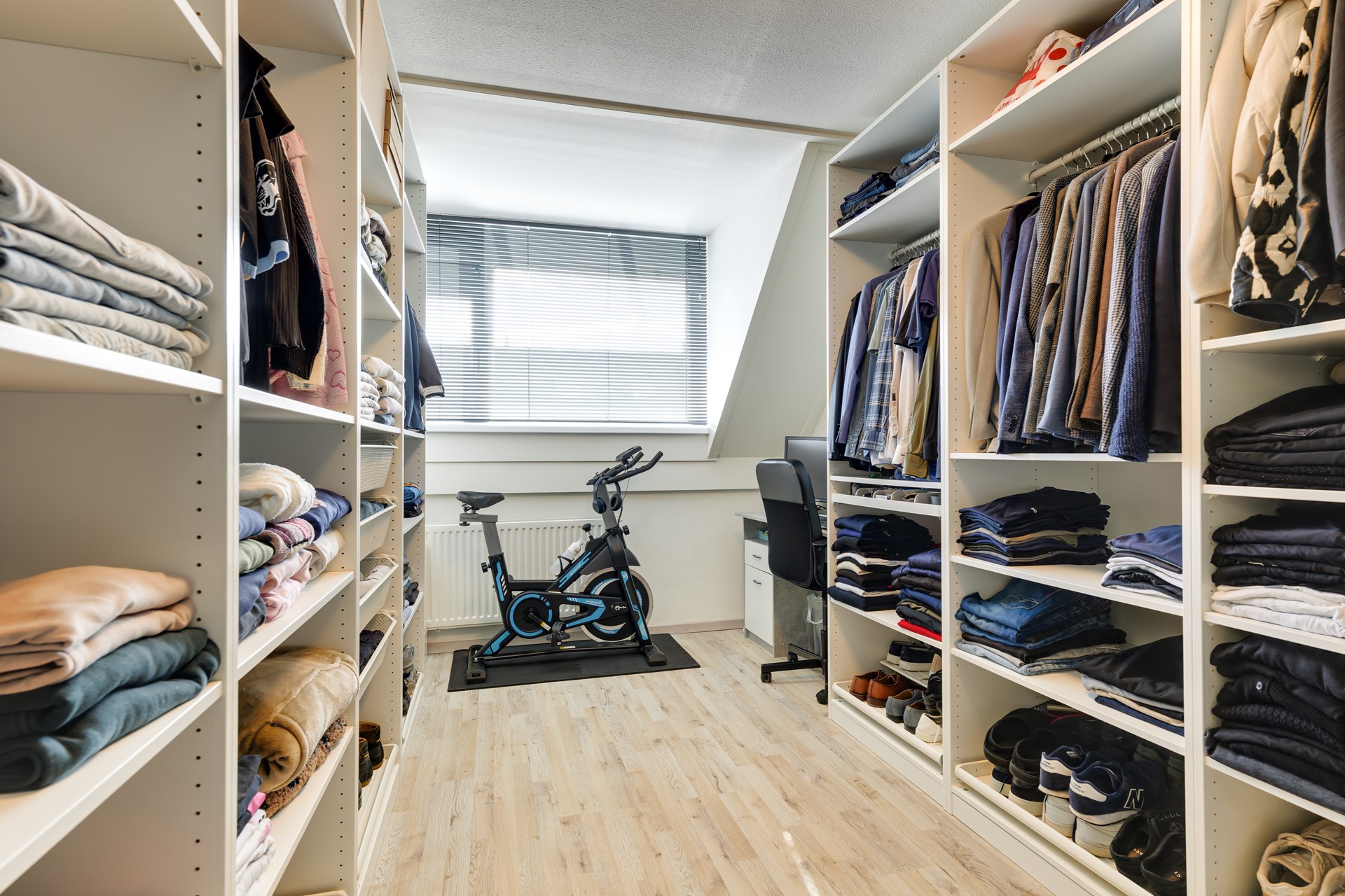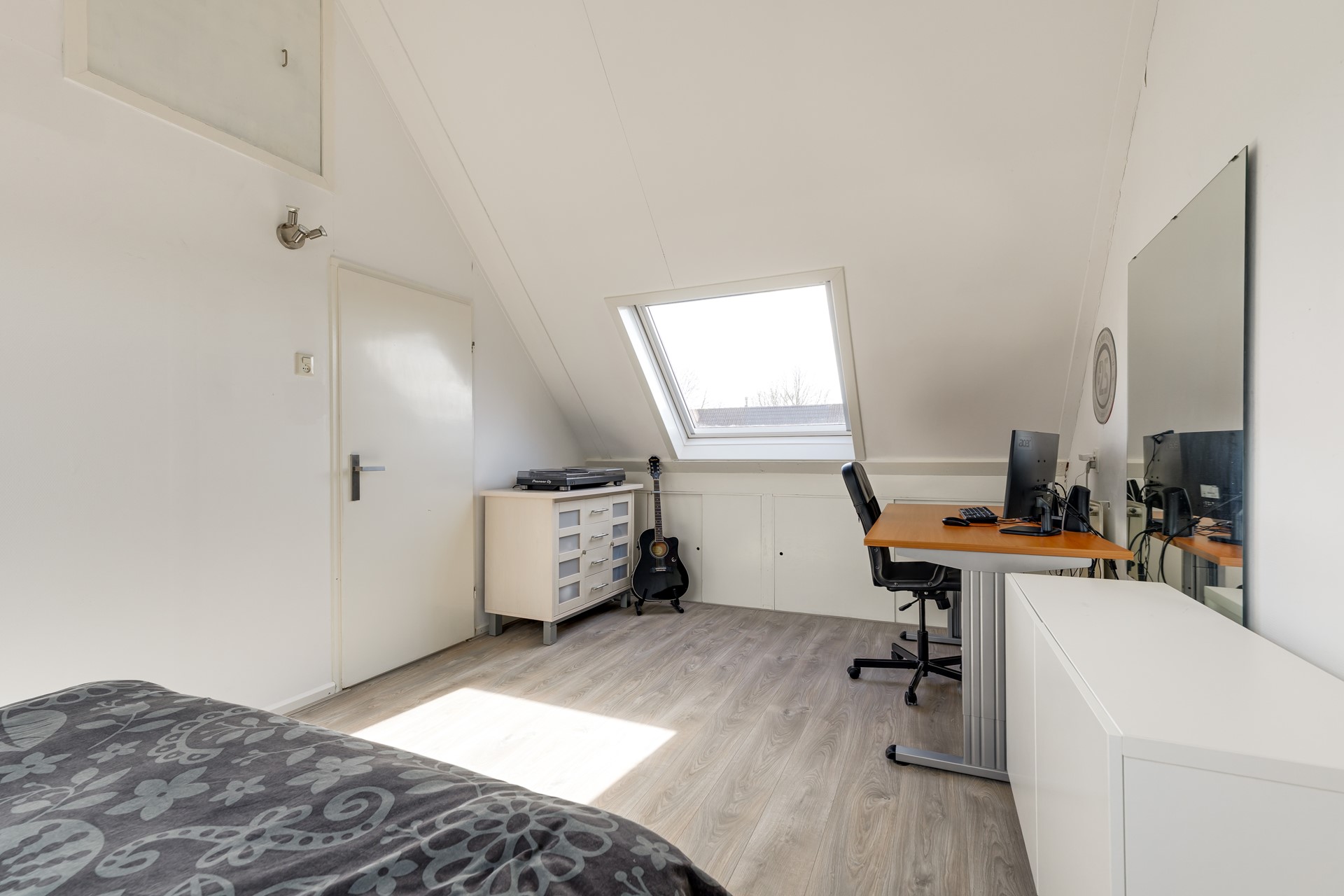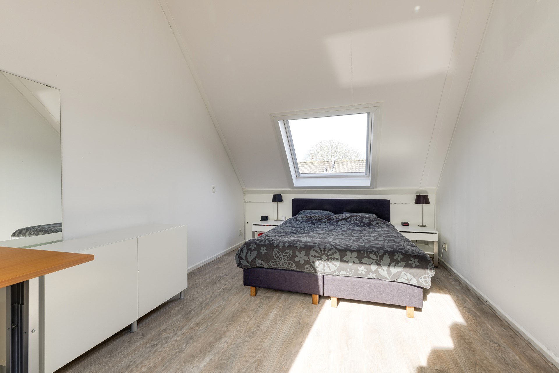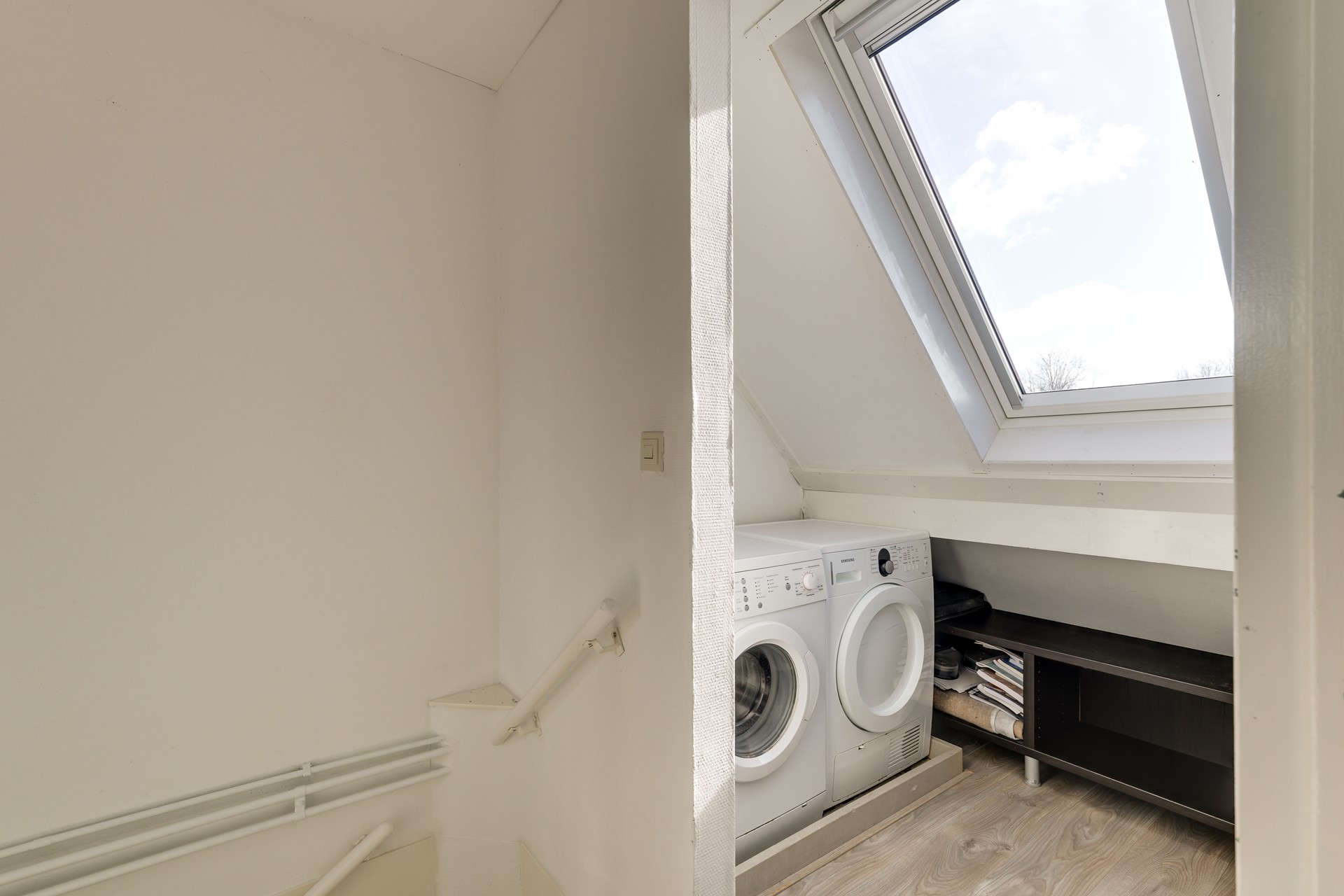 De tweede verdieping biedt een ruime vierde slaapkamer met dakramen en extra bergruimte achter de knieschotten. Daarnaast is hier een aparte bergkamer en ruimte voor de wasmachine en droger.