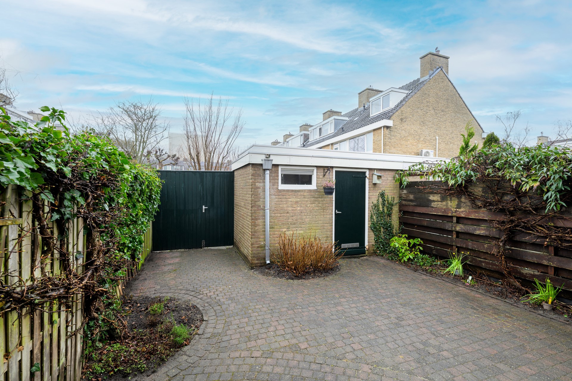 De achtertuin is onderhoudsvriendelijk aangelegd en beschikt over een achterom en stenen berging. Een fijne plek om te ontspannen of kinderen veilig buiten te laten spelen.