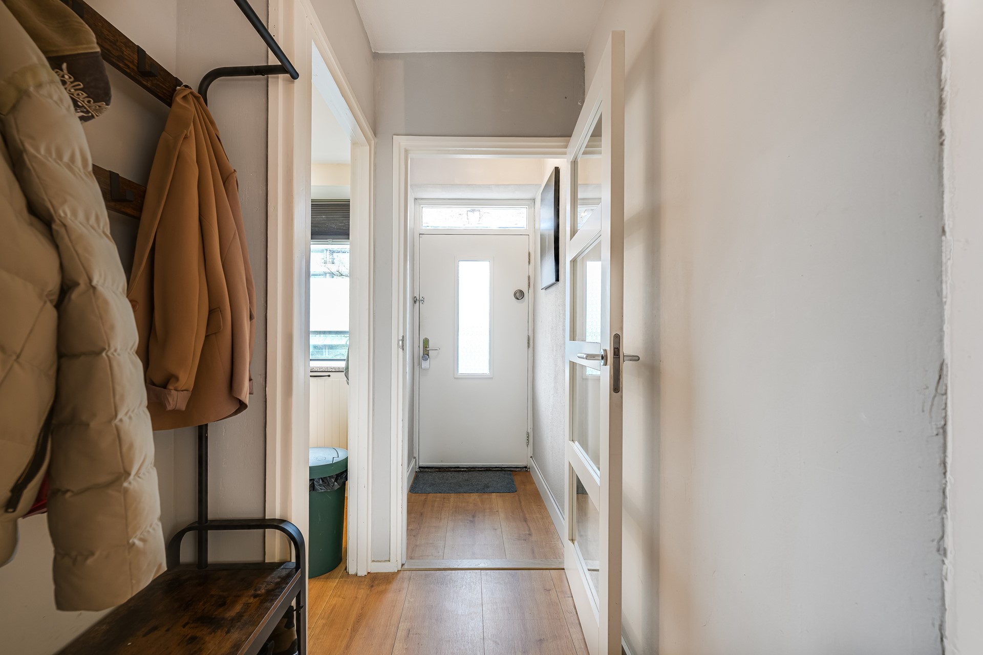 De woning beschikt over twee goede slaapkamers. De badkamer is netjes uitgevoerd met ligbad, wastafel en wasmachineaansluiting. Het toilet is separaat en recent verbouwd. In de onderbouw bevindt zich een eigen berging voor fietsen en extra opslag.