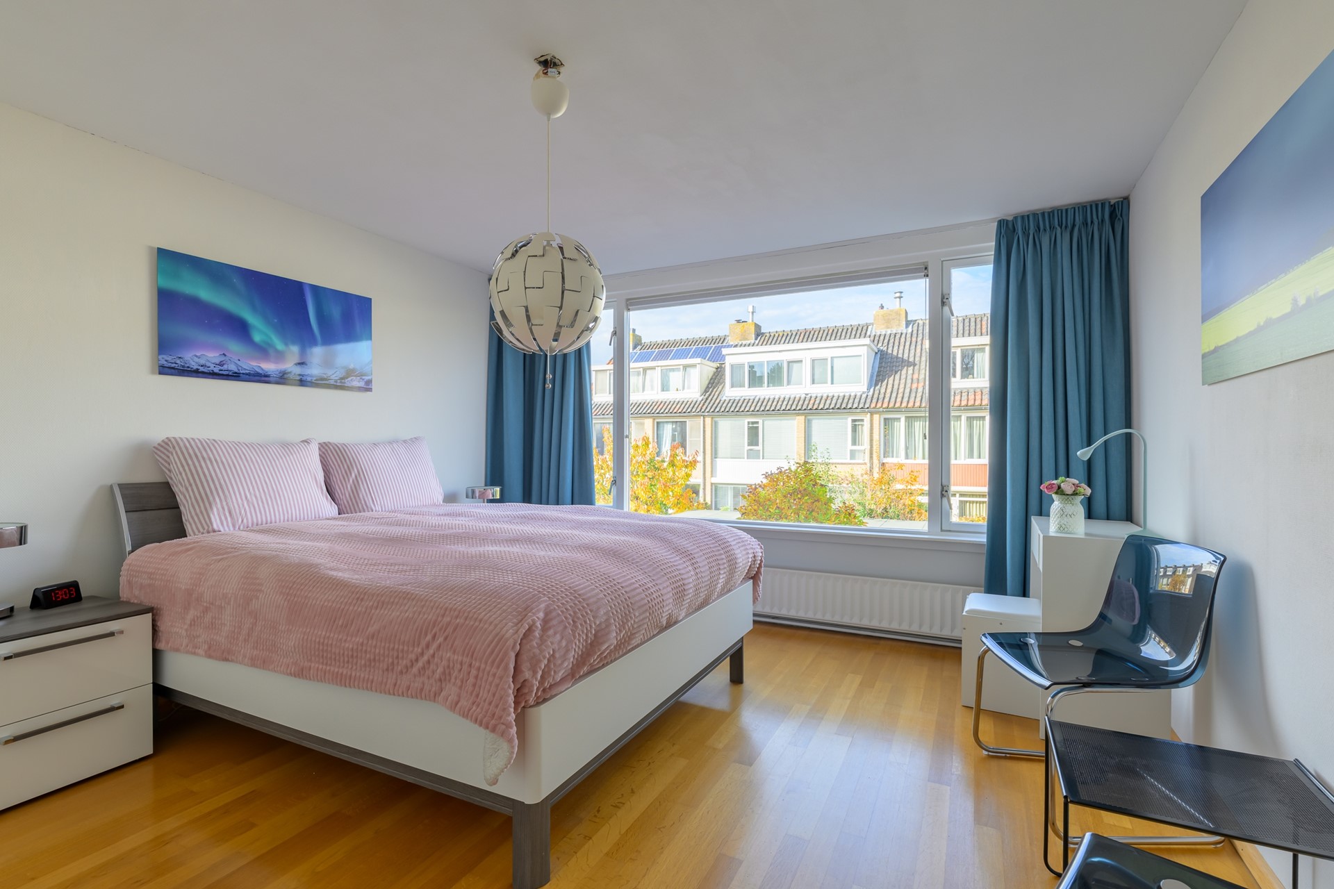 De hoofdslaapkamer aan de achterzijde is opvallend ruim en licht. Op deze verdieping vind je twee fijne slaapkamers, waarvan één toegang heeft tot het balkon. Dankzij de rustige kleuren en prettige lichtinval voelen alle kamers direct uitnodigend. Op de overloop is een aparte wasruimte aanwezig.