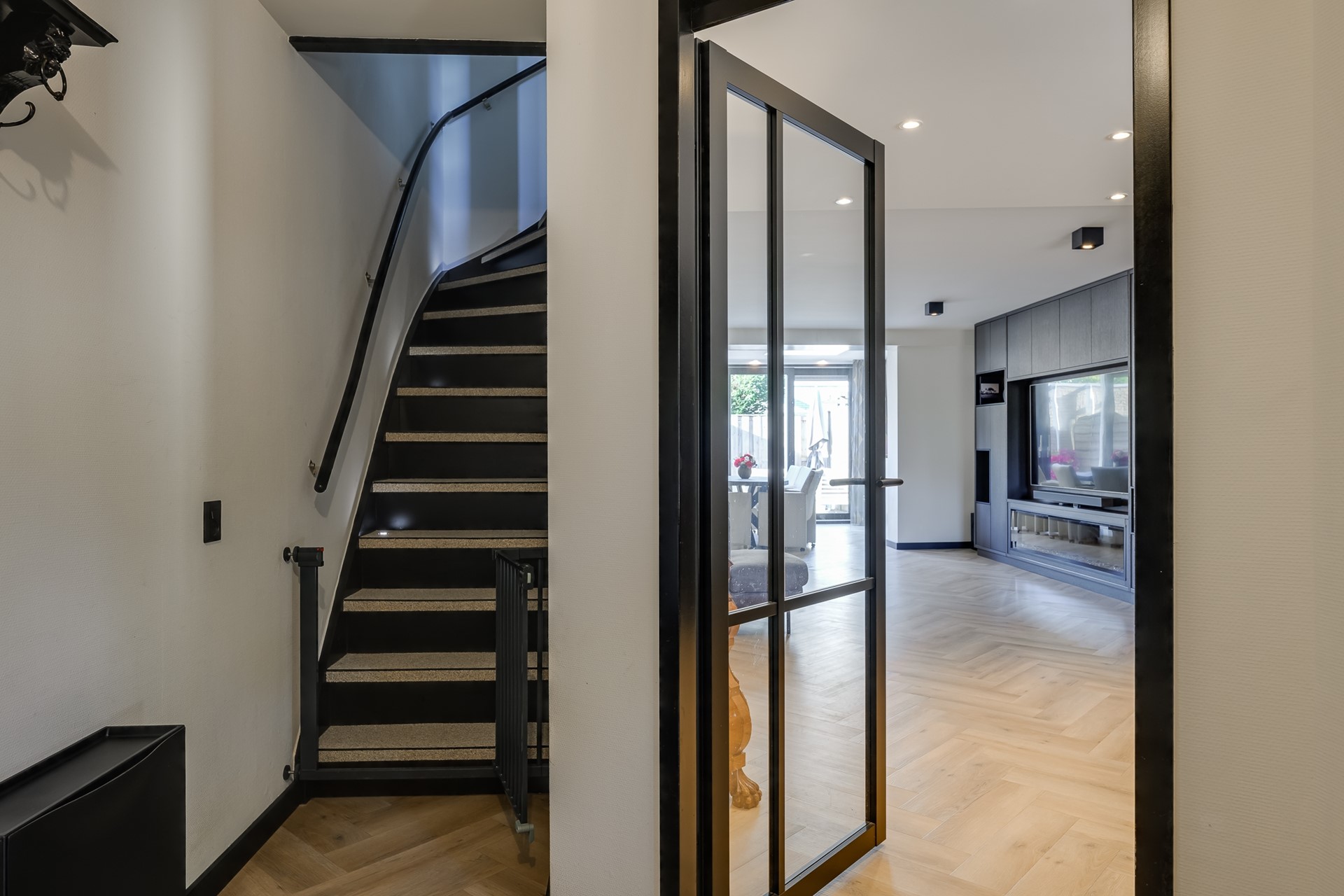 Stap binnen en voel meteen de rust. De voortuin met parkeerplek maakt het thuiskomen al een feest – nooit meer rondjes rijden op zoek naar een plekje. Binnen wacht een strakke hal met vaste kast en een modern toilet. Aan de voorzijde ligt de open keuken, uitgevoerd in L-opstelling, met hoogwaardige Siemens-apparatuur en een stoer stenen werkblad. Hier kook je de lekkerste pasta’s terwijl je kinderen hun huiswerk maken aan de eettafel.