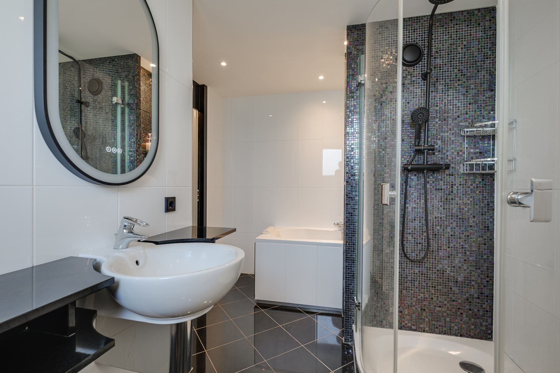 Op de eerste verdieping vind je een speels ingedeelde slaapkamer aan de voorzijde en een fantastische master bedroom met inloopkast aan de achterzijde. Hier word je wakker met het gevoel dat je in een boutique hotel logeert. De badkamer is een waar wellnessparadijs: ligbad, separate douche, dubbele wastafel, tweede toilet én een bidet – luxe in optima forma.