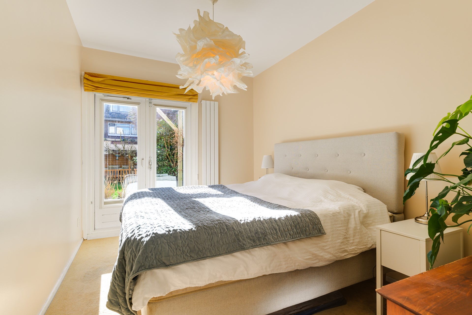 Een absolute blikvanger van deze woning is de zeer royale achtertuin, gelegen op het zuiden. De tuin is circa 9 meter breed en ruim 13 meter diep en biedt een heerlijke combinatie van terras, groen en privacy. Hier kun je vrijwel de hele dag van de zon genieten.