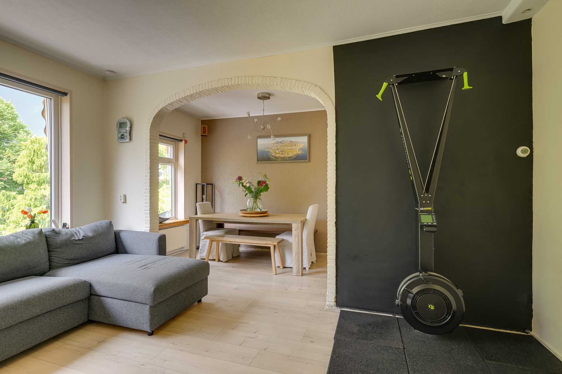 Stap binnen in de hal en voel meteen de ruimte om je heen. De woonkamer baadt in het licht dankzij de brede ramen en biedt volop plek voor een royale zithoek en een gezellige eettafel. Je kijkt uit over groene boomtoppen en ervaart hier elke dag dat gevoel van rust midden in de stad.