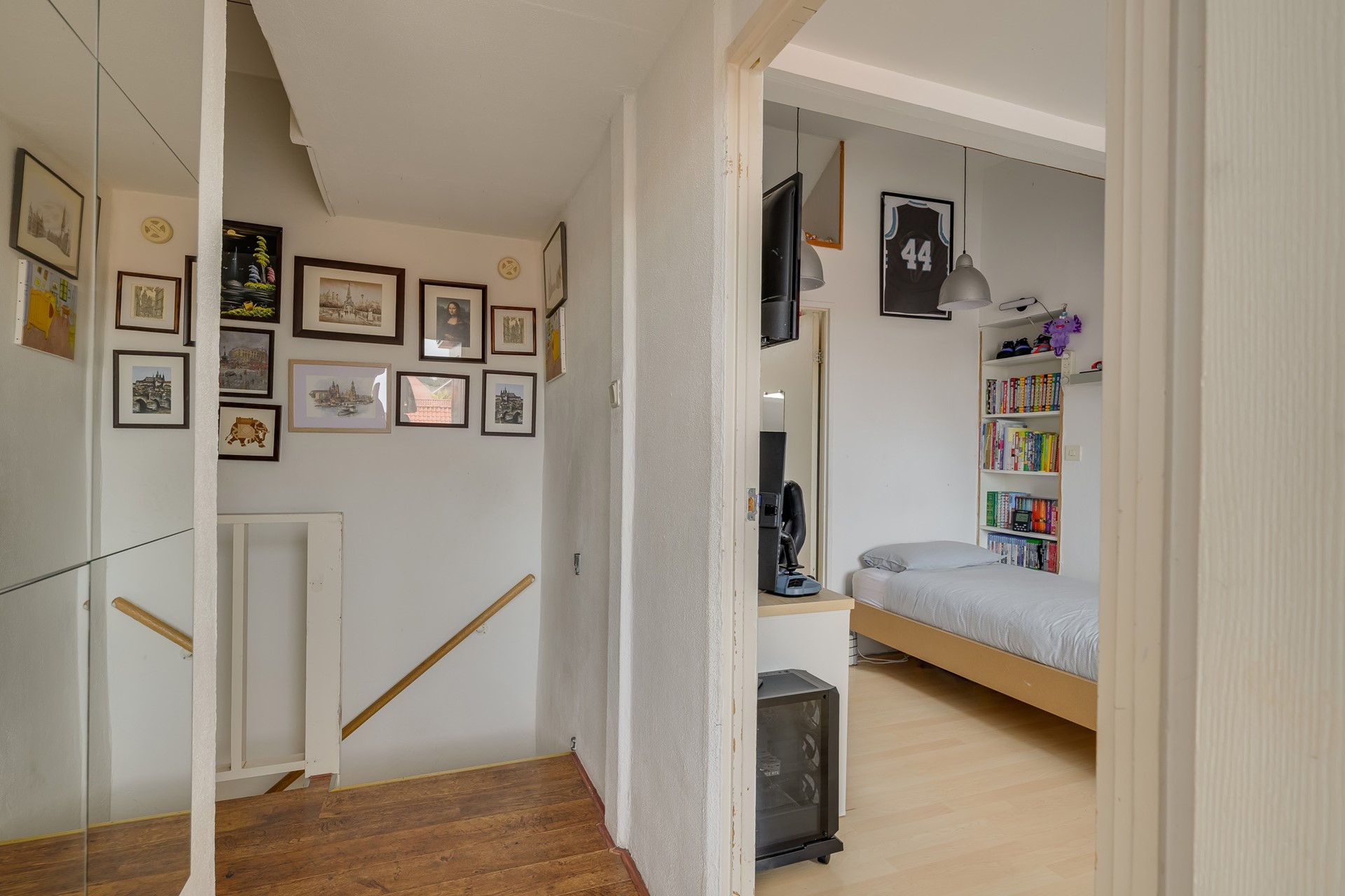 Op de eerste woonlaag vind je ook een slaapkamer en de eerste badkamer – praktisch voor logés, een thuiswerkplek of een eigen domein voor een gezinslid.