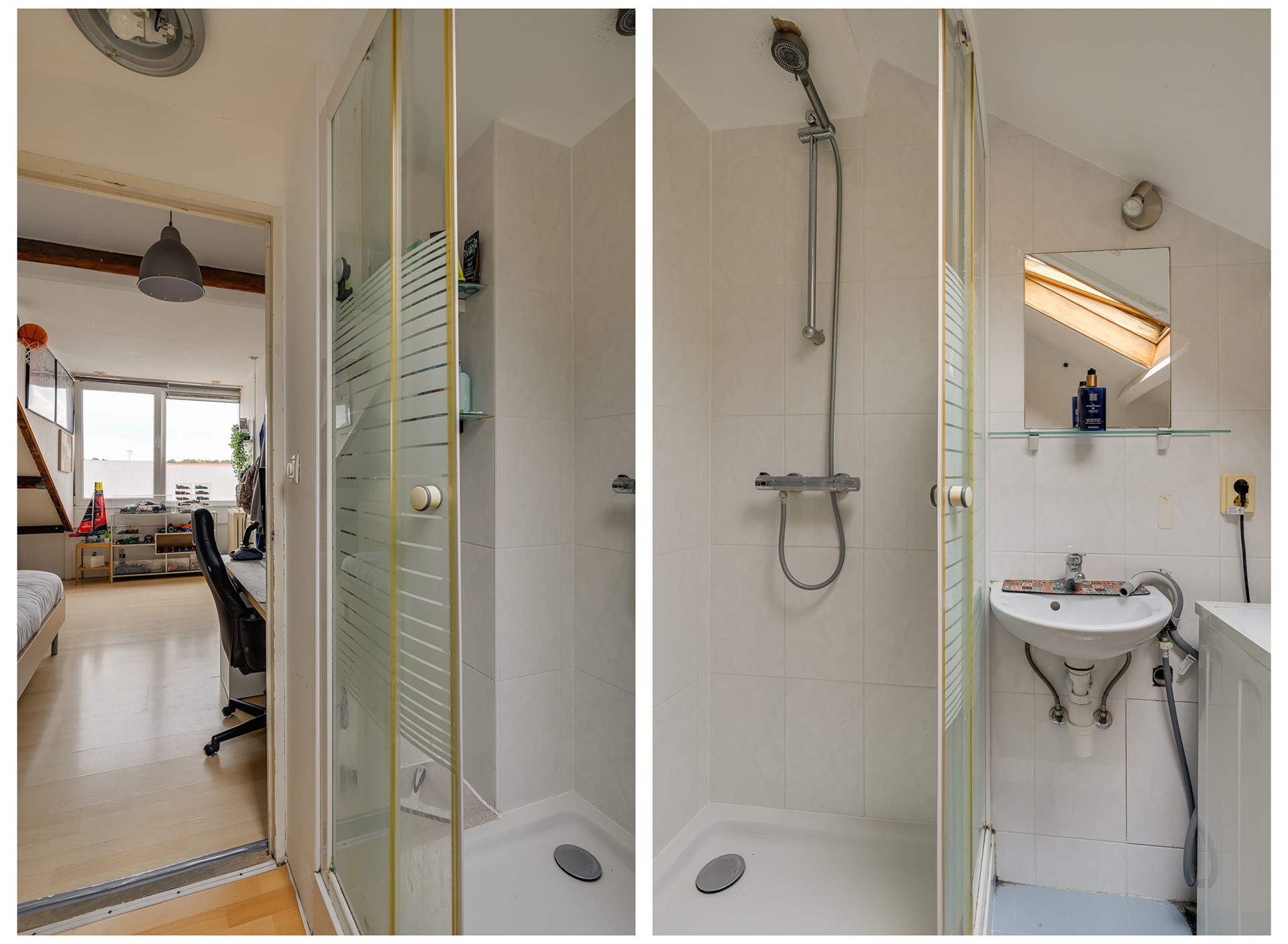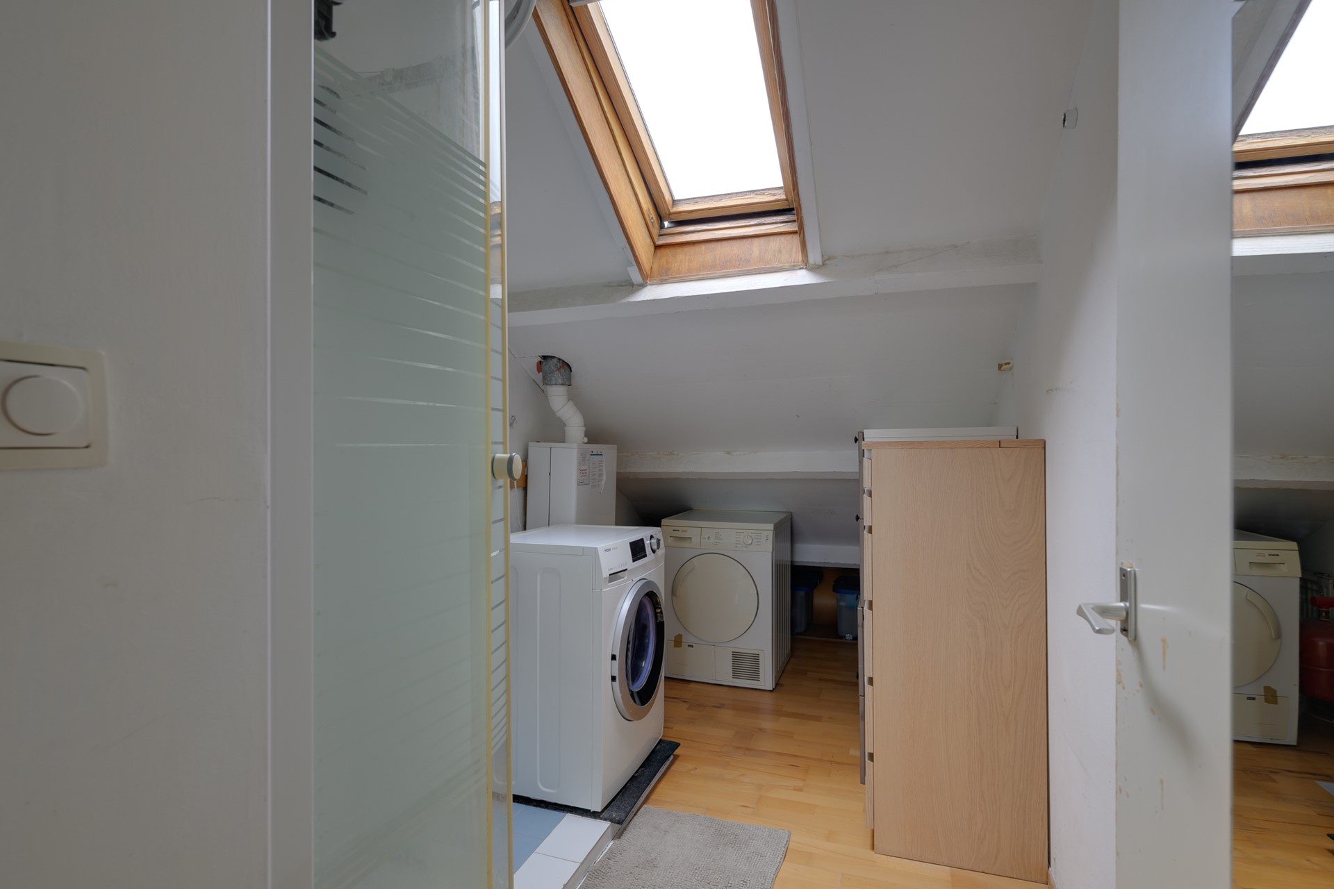 Een vaste trap brengt je naar de tweede woonlaag, waar maar liefst drie slaapkamers op je wachten. Hier heb je de ruimte om je dromen vorm te geven: een masterbedroom met hoge nok en dakramen waar het daglicht naar binnen stroomt, een kinderkamer, een logeerkamer, of juist die walk-in closet waar je altijd al van droomde. De tweede badkamer maakt het plaatje compleet: een ideale indeling voor gezinnen en stellen die ruimte zoeken.
